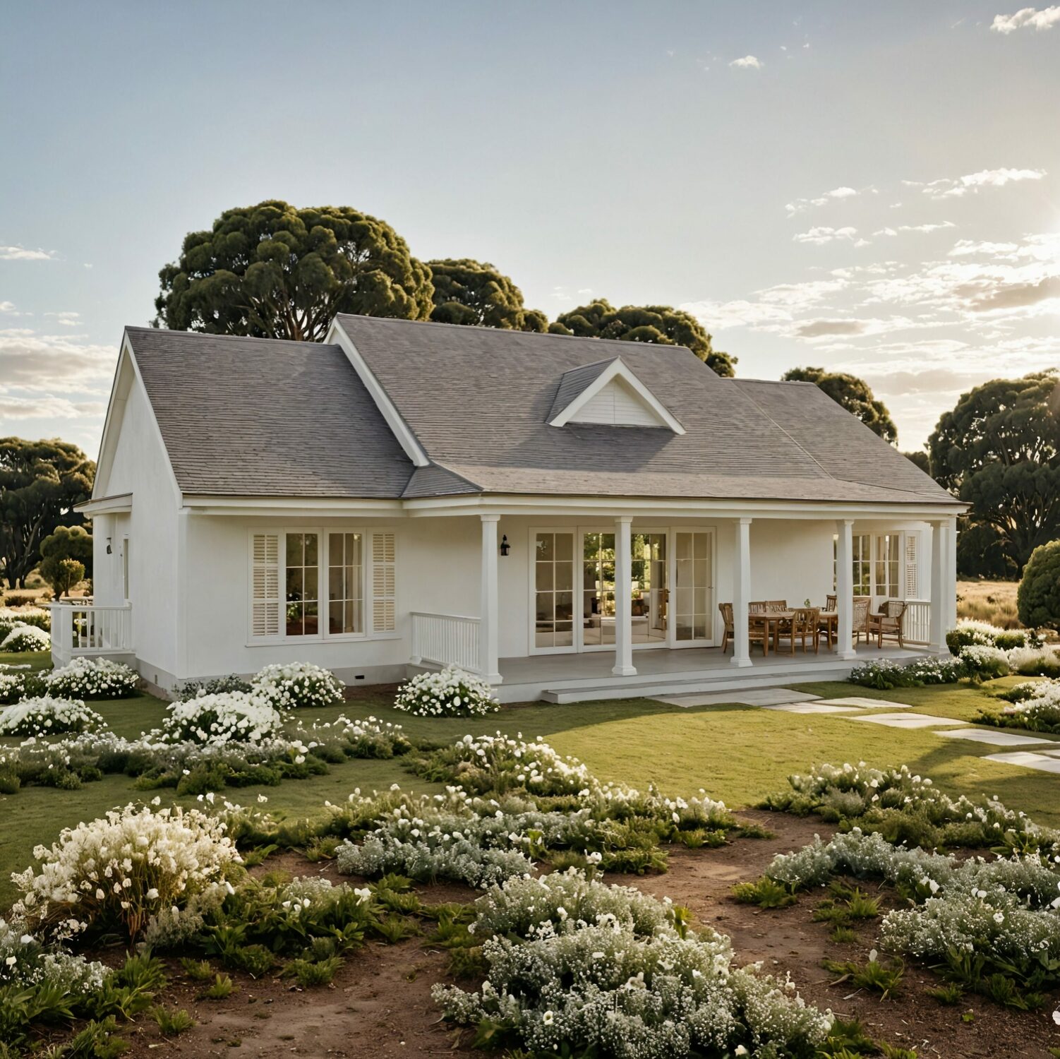 Dom parterowy z tarasem i werandą w stylu amerykańskim – poznaj projekty White Porch