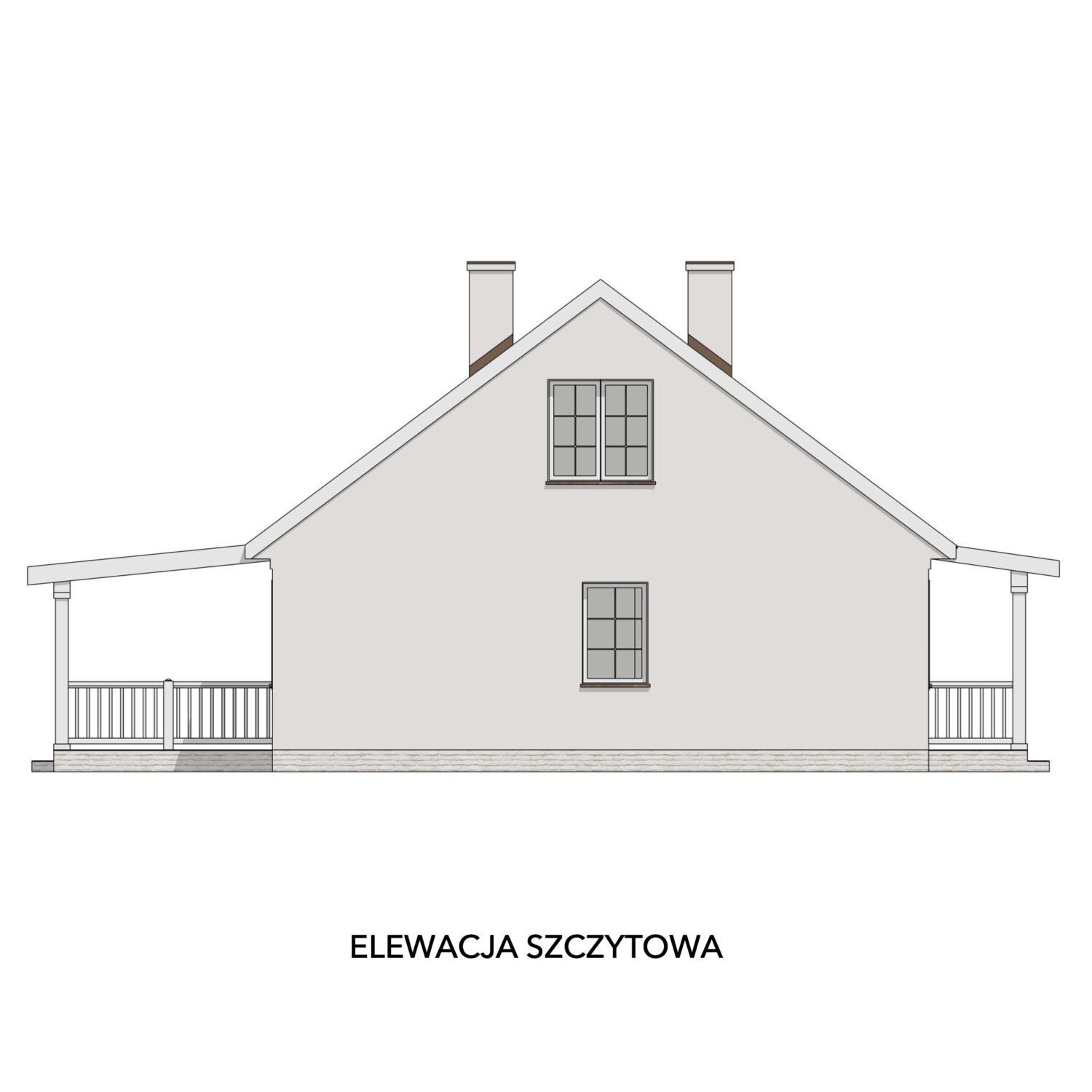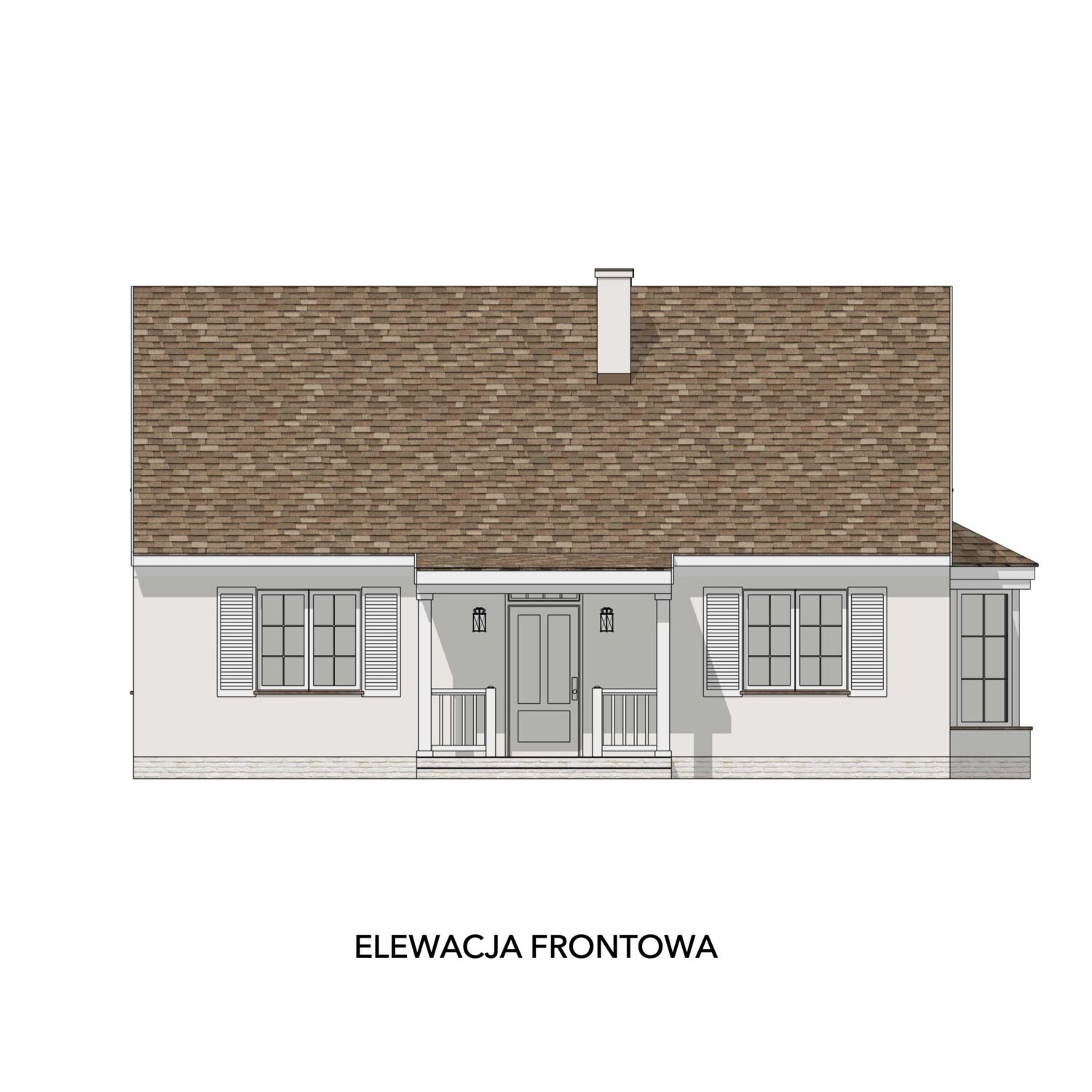 Dom parterowy z poddaszem i tarasem White Porch to projekt w stylu amerykańskim, łączący przytulność z funkcjonalnością.