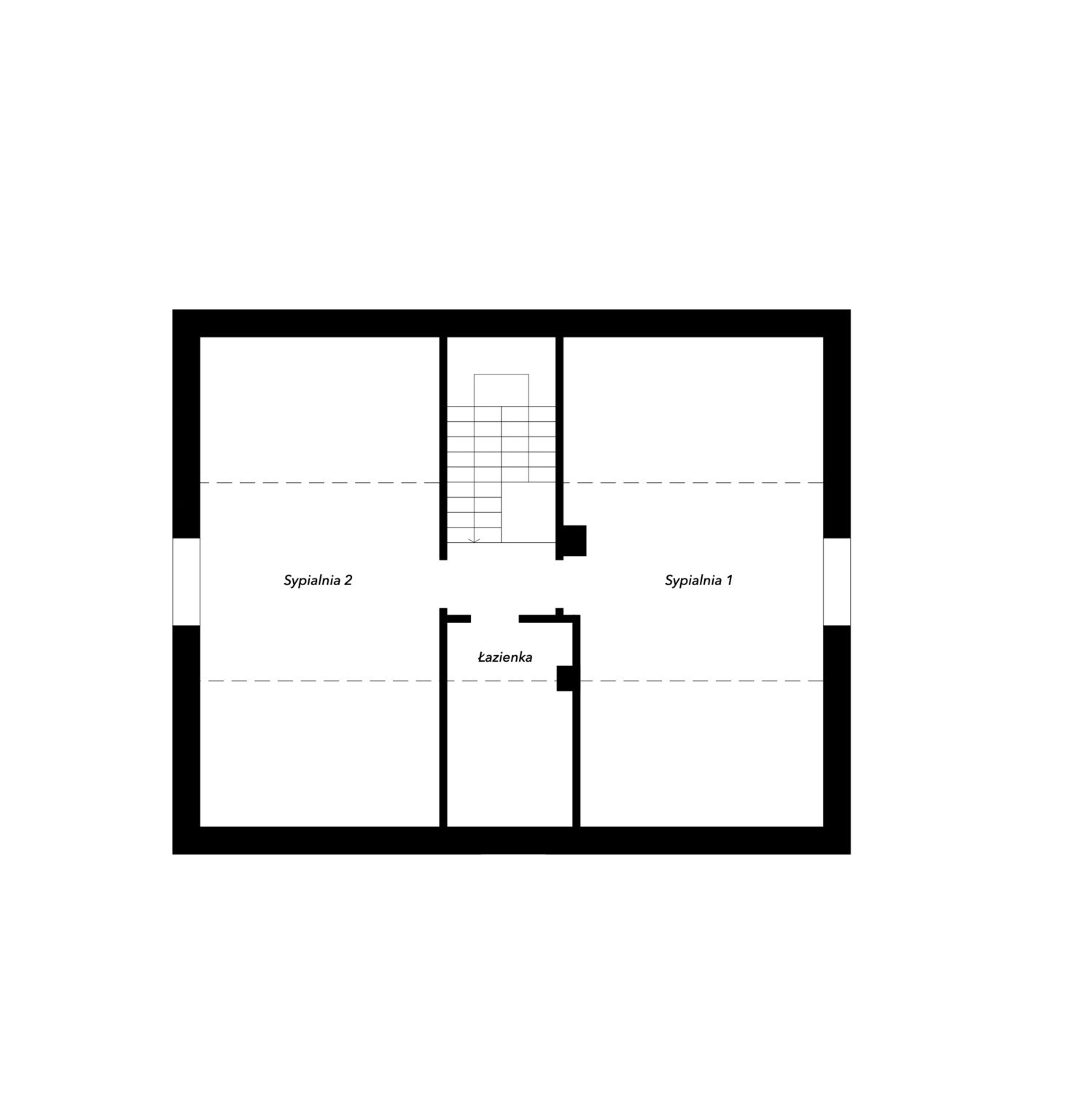 Na poddaszu zaplanowaliśmy dwie kolejne sypialnie i drugą łazienkę, dzięki czemu dom swobodnie pomieści rodzinę 2+2 lub komfortowo ugości bliskich.